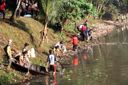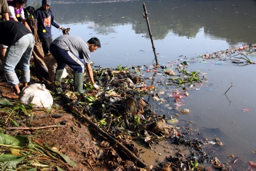 Berbekal karung bekas, mereka terjun ke tepi danau untuk memungut sampah yang menumpuk dan berceceran. Ada yang memakai sarung tangan, ada juga yang bertangan telanjang.