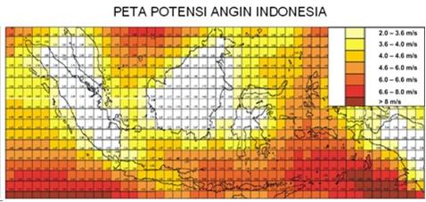 Jumlah ini bukanlah mustahil untuk dipenuhi jika kita melihat potensi energi angin yang tersebar di seluruh pesisir nusantara. Indonesia yang memiliki total garis pantai mencapai 81.000 km dengan kecepatan angin rata-rata 3-5 m/s, bahkan di beberapa tempat mencapai 10 m/s.