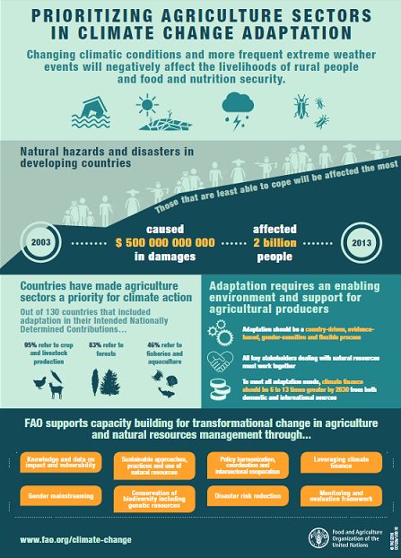 Sektor pertanian menjadi fokus adaptasi perubahan iklim, karena ancaman perubahan iklim terhadap ketahanan pangan nyata adanya. Petani juga menjadi kelompok yang rentan akibat deraan kemiskinan, sehingga tak mampu membeli pangan yang mereka produksi sendiri.