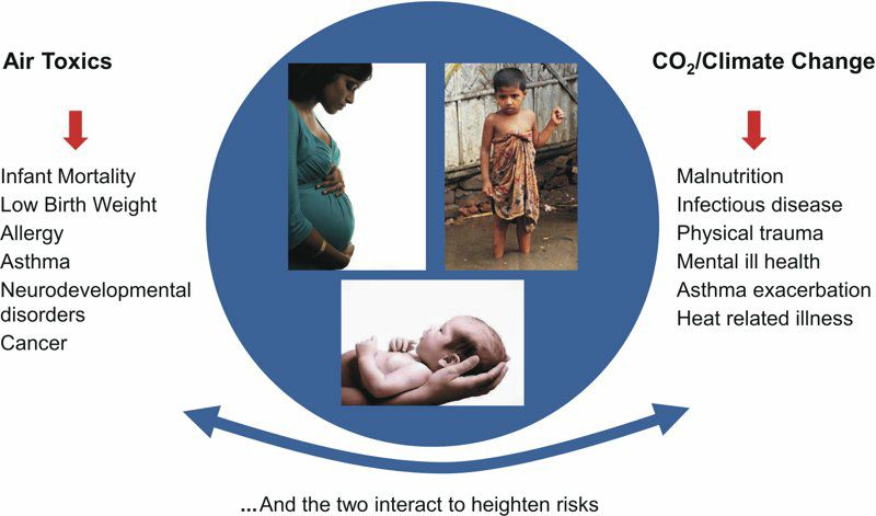 Pencemaran udara dan polusi iklim saling terkait. Pencemaran udara memicu kematian prematur, bayi lahir kekurangan berat badan, alergi, asma, gangguan syaraf dan kanker.