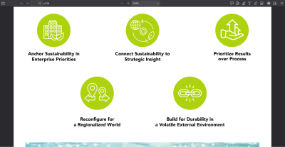 Dalam konteks yang berubah ini, Korngold dan Cramer berpendapat bahwa strategi keberlanjutan yang dirancang untuk era sebelumnya memerlukan pembaruan fundamental. Mereka menawarkan lima pendekatan baru untuk keberlanjutan bisnis strategis.